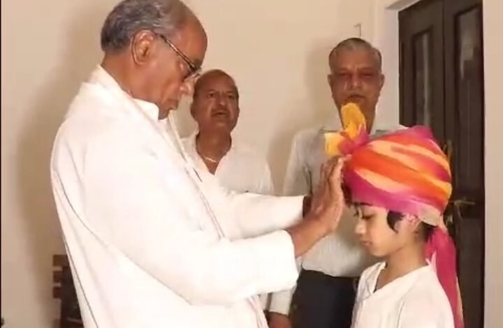 दिग्विजय सिंह ने पोते को सिखाया साफा बांधना, सोशल मीडिया पर वायरल वीडियो.. दादा पोते के प्रेम की हो रही तारीफ
