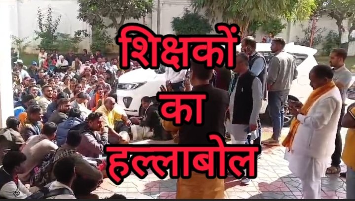 सहायक शिक्षकों का सरकार के खिलाफ हंगामा, बीजेपी मुख्यालय के अंदर घुसकर दिया धरना..!