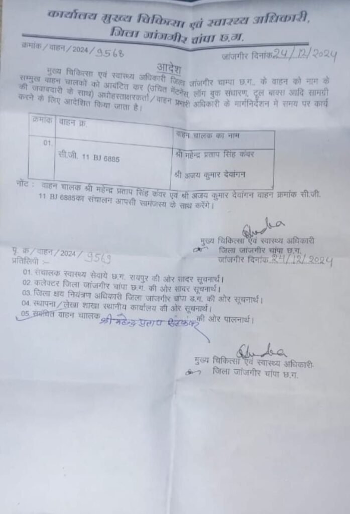 सरकारी नियमों की अनदेखी: सीएमएचओ कार्यालय के कर्मचारी निजी वाहनों से कमा रहे मुनाफा..! नियमो का किया जा रहा खुला उल्लंघन… शासन को हो रहा लाखों रु के राजस्व का नुकसान..!