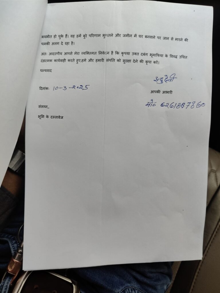 मामला बुजुर्ग विधवा महिला की निजी भूमि पर बल पूर्वक जबरन कब्जा और निर्माण से जुड़ा हुआ…. पीड़िता ने बताया कि गुंडे को मिला हुआ है कांग्रेस शहर जिला अध्यक्ष का संरक्षण….!