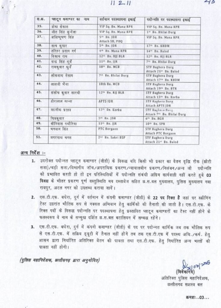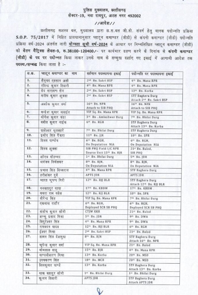 छत्तीसगढ़डेस्क खबर छत्तीसगढ़ पुलिस में प्लाटून कमांडरों की पदोन्नति, 51 अधिकारियों को नई तैनाती… देखिये पूरी सूची.. डंकारामMarch 31, 2025 552 Less than a minute डंकारामMarch 31, 2025 552 Less than a minute