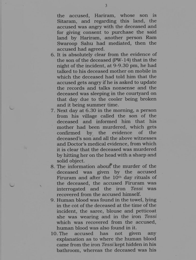 फिरूराम साहू पर आरोप था कि उन्होंने अपने छोटे भाई की पत्नी की हत्या की थी। जुलाई 2023 में सक्ती फास्ट ट्रैक कोर्ट ने उन्हें आजीवन कारावास की सजा सुनाई थी। इसके विरुद्ध उन्होंने छत्तीसगढ़ हाई कोर्ट, बिलासपुर में अपील की, परंतु जनवरी 2024 में वह अपील भी खारिज हो गई।