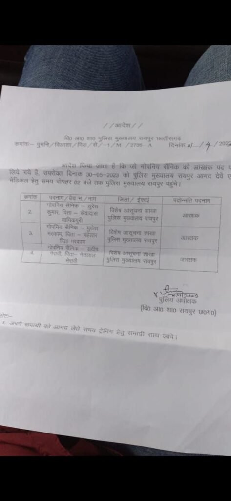 पुलिस विभाग में बड़ा घोटाला, प्रधान आरक्षक पर गंभीर आरोप..! मुखबिर को आरक्षक बनाने के लिए लाखों रु. ! फर्जी आदेश पत्र से विभाग मे मचा हड़कंप..!!