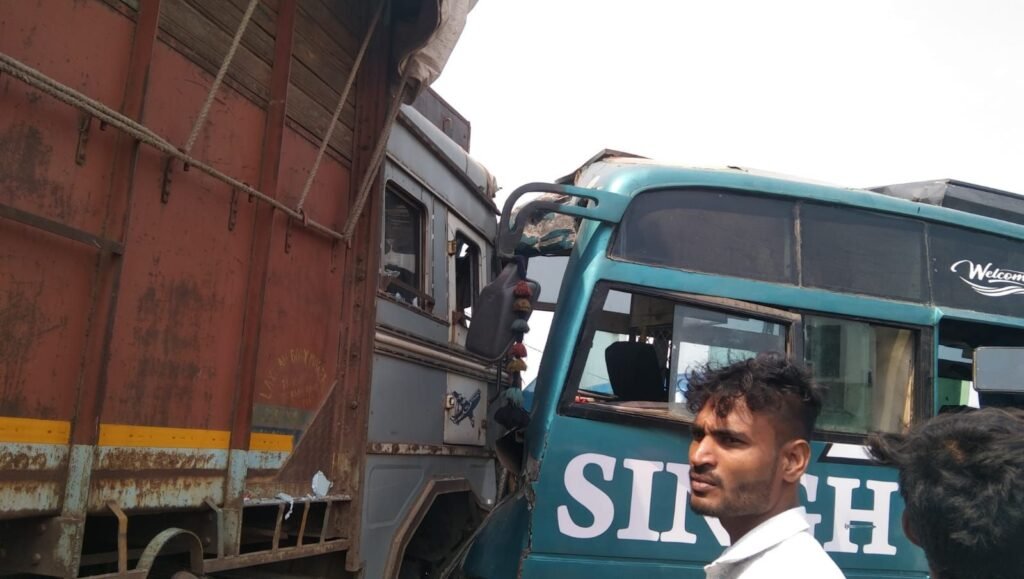 तखतपुर में भीषण सड़क हादसा: बस-ट्रक की टक्कर में 20 यात्री घायल