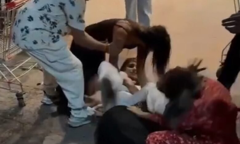 नशे में धुत युवतियों का सड़क में कैट फाइट का वीडियो वायरल, क्लब के बाहर जमकर मचाया उत्पात … लात घुसे बरसाते युवतियों की लड़ाई में कूद पड़े युवक ..