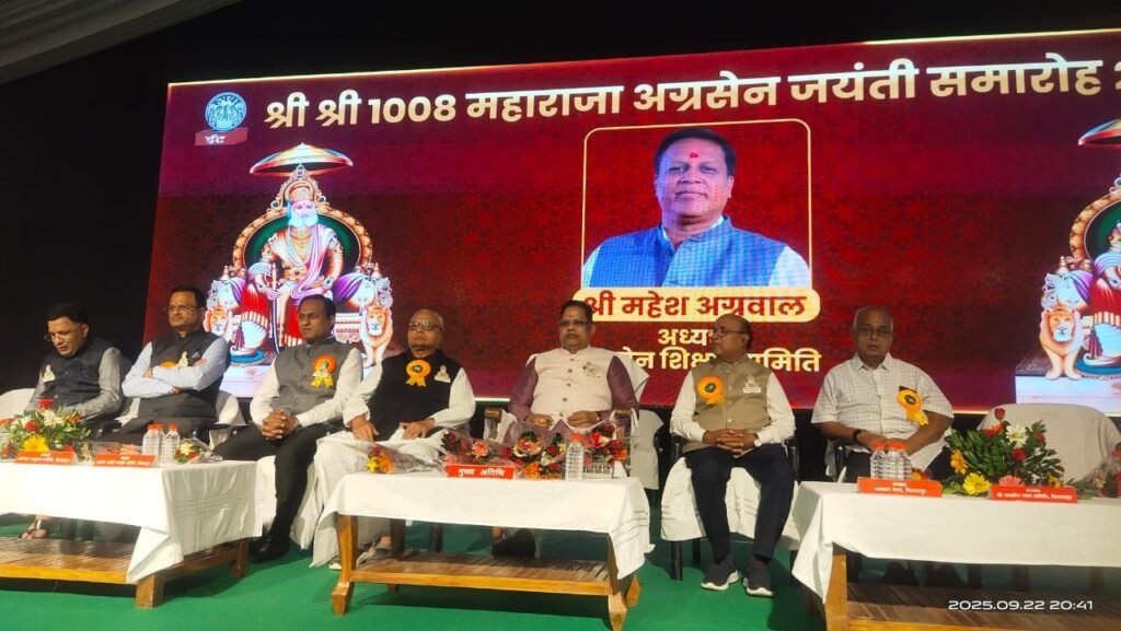 आज अग्रसेन जयंती पर सुबह 9बजे महाराजा अग्रसेन जी की मूर्ति पर हिमालय पर कर महा आरती की गई। तत्पश्चात 10:00 बजे से अग्रवाल समाज के द्वारा शहर में चौक चौराहों पर भंडारा का आयोजन कियागया। 20000 से अधिक से अधिक लोगों ने महाराजा अग्रसेन जयंती के भोग भंडारा में प्रसाद ग्रहण किया। अग्रवाल समाज के द्वारा शहर के 10 जगहों में अलग-अलग भंडारा की व्यवस्था की गई थी। समाज के युवाओं को इसकी जिम्मेदारी भी दी गई थी। बजे कर 10 से दोपहर 3 बजे तक लोगों ने भोग प्रसाद ग्रहण किया। आज कार्यक्रम में शिव अग्रवाल, चतुर्भुज अग्रवाल, सुनील सोथालिया ने समाज के सभी प्रबुद्ध जनों का आभार जताया और कहा कि अ जयंती पर समाज की एक जुटता दिखाई दी। 15 दिनों तक अग्रवाल समाज के महिलाओं बच्चों तथा सभी ने बढ़ चढ़कर इसमें हिस्सा लिया और आगे भी महाराजा अग्रसेन जयंती को सफल बनाने के लिए धूमधाम से सभी एकजुट होकर काम करेंगे ।
