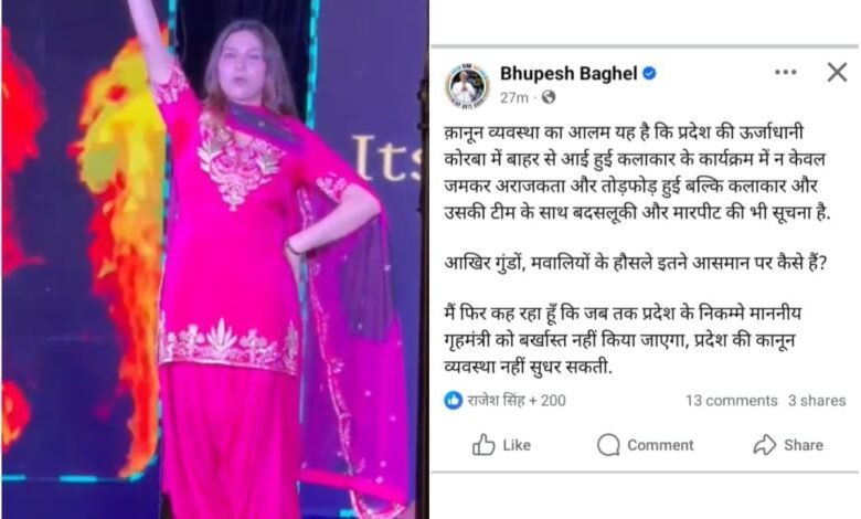 फिलहाल पुलिस ने जांच शुरू कर दी है और आरोपियों की तलाश जारी है। सपना चौधरी और उनकी टीम सुरक्षित हैं, लेकिन इस घटना ने प्रदेश की कानून व्यवस्था पर गंभीर सवाल खड़े कर दिए हैं। वहीं पूर्व सीएम बघेल का ट्वीट भी चर्चा का विषय बना हुआ है ।
