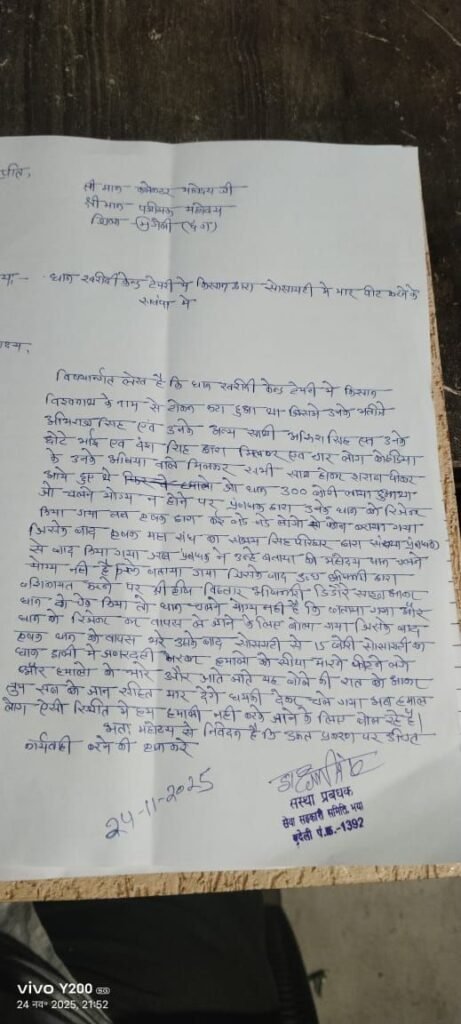 किसानों ने रिजेक्ट किए गए धान को वापस बोरे में भरना शुरू किया और मौके पर उपलब्ध सोसायटी के अन्य धान के बोरों को भी जबरन ले जाने की कोशिश की। जब हमालों ने धान ले जाने से मना किया, तो उनके साथ गाली-गलौज और मारपीट की गई। हंगामे और भय के माहौल के कारण हमाल काम छोड़कर केंद्र से दूर चले गए। सोसायटी प्रबंधन ने इस पूरे मामले की शिकायत कलेक्टर और सिटी कोतवाली थाना प्रभारी को सौंपते हुए आरोपियों के खिलाफ कड़ी कार्यवाही की मांग की है । इस घटना का वीडियो का कुछ अंश भी सामने आया है जिसमें मारपीट और गालीगलौच की घटना कैद हुई है ।
