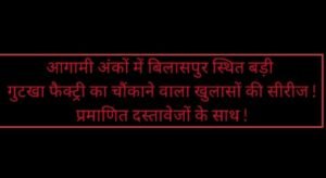 आगामी अंकों में बिलासपुर स्थित बड़ी गुटखा फैक्ट्री का चौंकाने वाला खुलासों की सीरीज ! प्रमाणित दस्तावेजों के साथ !