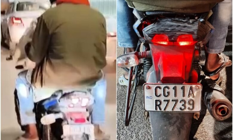 बिलासपुर में यातायात नियमों की खुलेआम अनदेखी, नंबर प्लेट पर टेप लगाकर कैमरों को चकमा दे रहे बाइक सवार.! जागरूक नागरिक ने किया नजारा कैमरे में कैद ।