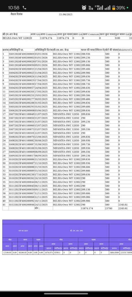 डेस्क खबर बिलासपुर../ जिले में धान खरीदी अब अपने अंतिम चरण में पहुंच चुकी है। ऐसे में खरीदी केंद्रों में रखे धान को समय पर राइस मिलों तक पहुंचाने के लिए प्रशासन लगातार प्रयासरत है, लेकिन इसी बीच बिल्हा ब्लॉक से धान कस्टम मिलिंग में बड़े फर्जीवाड़े के आरोप सामने आए हैं। मामला बिल्हा के केसला स्थित मां वैष्णवी एवं मां नारायणी राइस मिल से जुड़ा है, जहां पुराने बकाया के बावजूद नए पंजीयन के जरिए धान उठाव किए जाने की बात सामने आई है।