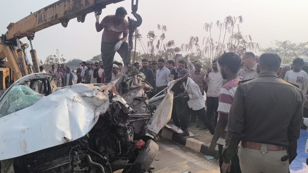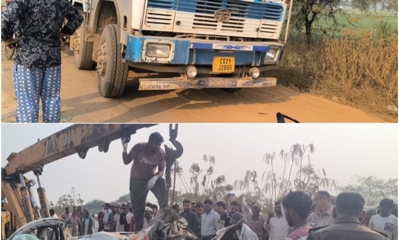 डेस्क खबर ../ छत्तीसगढ़ के धमतरी जिले में शनिवार को एक दर्दनाक सड़क हादसा हो गया। अर्जुनी थाना क्षेत्र के अंतर्गत खपरी बाईपास पर जगदलपुर बटालियन से लौट रही एक डिजायर कार की सामने से आ रहे ट्रक से जोरदार टक्कर हो गई। टक्कर इतनी भयावह थी कि कार के परखच्चे उड़ गए और वाहन पूरी तरह क्षतिग्रस्त हो गया। देखते ही देखते आसपास चीख पुकार मच गई और किसी तरह मृत और घायलों को गाड़ी से निकाला गया ।