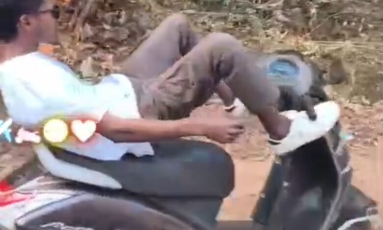 चलती स्कूटी में खतरनाक स्टंट.! युवक का जानलेवा वीडियो हुआ वायरल ! हाथों की जगह पैरों से थामी स्टेयरिंग !