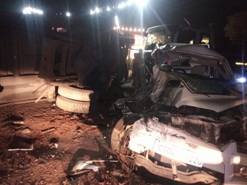 प्राप्त जानकारी के अनुसार गुरुवार-शुक्रवार की दरम्यानी रात करीब 2 बजे ट्रेलर क्रमांक CG-11-BD-9044 रतनपुर की ओर से रायपुर जा रहा था। इसी दौरान चालक वाहन से नियंत्रण खो बैठा और ट्रेलर अचानक रॉन्ग साइड में पहुंच गया। सामने से आ रही स्कॉर्पियो क्रमांक CG-04-MQ-4220 से उसकी जोरदार भिड़ंत हो गई। टक्कर इतनी जबरदस्त थी कि ट्रेलर ने पास में खड़े एक अन्य ट्रेलर को भी अपनी चपेट में लेते हुए पलटी मार दी।