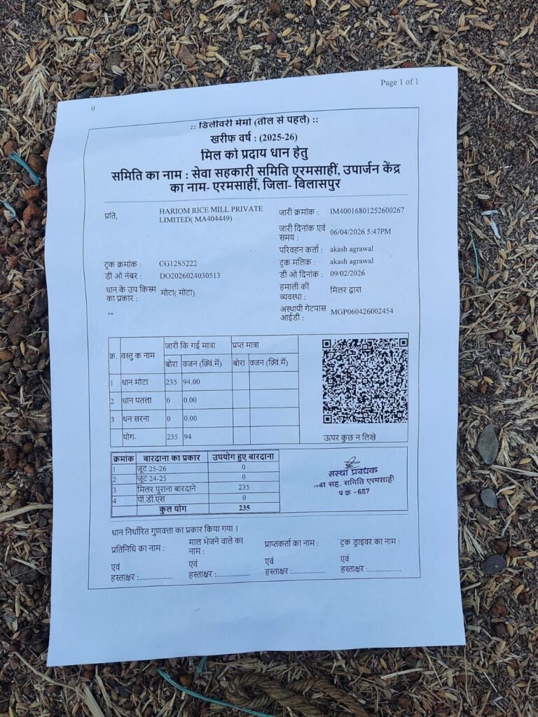 डेस्क खबर बिलासपुर../ प्रदेश की न्यायधानी बिलासपुर जिले के धान खरीदी केंद्रों में अनियमितताओं की शिकायतें लगातार सामने आ रही हैं, लेकिन मस्तूरी क्षेत्र के एरमसाही धान खरीदी केंद्र में सामने आया ताजा मामला हैरान करने वाला है। यहां बिना धान उठाए ही परिवहन के लिए डीओ (डिलीवरी ऑर्डर) काट दिया गया, जबकि केंद्र में एक भी बोरा धान मौजूद नहीं था। इस मामले का वीडियो भी ग्रामीणों ने बनाया है जिसको देख अधिकारी भी हैरान हो जायेगे कि भ्रष्टाचार की जड़े किस कदर तक फैली हुई है और किस प्रकार धान खरीदी और धान उठाव के नाम पर अधिकारी से लेकर कर्मचारी तक मालामाल हो रहे है ।