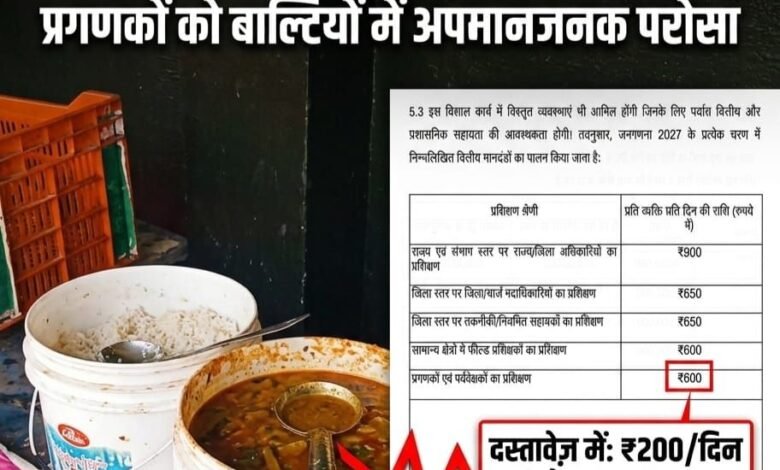 डिजिटल इंडिया की ‘बाल्टी मॉडल’ हकीकत !, जनगणना कर्मियों के आत्मसम्मान पर चोट, बाल्टी में परोसा गया भोजन ! वीडियो हुआ वायरल ,सरकार के दावों की खुली पोल !