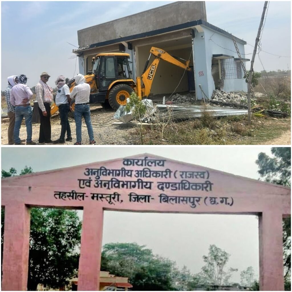 डेस्क खबर बिलासपुर-छत्तीसगढ़ के बिलासपुर जिले के मस्तूरी तहसील क्षेत्र में एक बेदखली कार्रवाई ने बड़ा विवाद खड़ा कर दिया है। खुदुभांठा गांव के निवासी अश्वनी टोण्ड्रे ने आरोप लगाया है कि उनके दादा संतराम टोंन्ड्रे के नाम पर नेशनल हाइये बिलासपुर अकलतरा पहुंच मार्ग मे स्थित कुडूभाठा मे डेढ़ एकड़ जमीन है जिसके कुछ ही दुरी पर ही टोल प्लाजा स्थित है टोंन्ड्रे का कहना है की तहसीलदार शिल्पा भगत ने हाईकोर्ट के स्थगन आदेश के बावजूद 20 अप्रैल 2026 को उनके पुश्तैनी मकान पर बुलडोजर चलवा दिया।