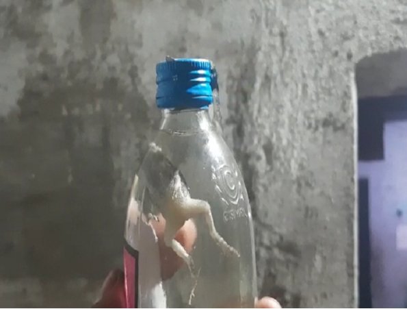 अब शराब की बीटल में मेढक कैसे अंदर पहुचा ये जांच का विषय है ।अब कंपनी की गलती से हुआ या सेल्समैन द्वारा मिलावट के समय ये घटना हो गई इसका जबाब अभी तक आबकारी विभाग के पास नही है।
