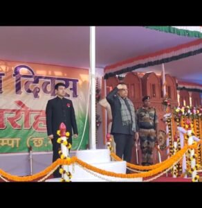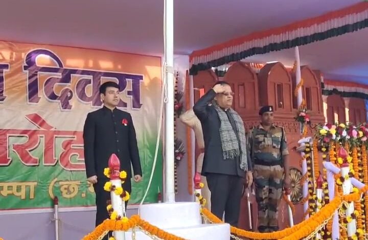 गणतंत्र दिवस के अवसर पर बिलासपुर विधायक अमर अग्रवाल ने जांजगीर के हाई स्कूल मैदान में किया ध्वजारोहण के बाद परेड की सलामी ली.