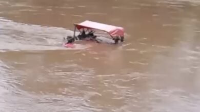 पानी के बहाव में बह गया ट्रैक्टर , तैरकर ग्रामीणों ने बचाई जान ,वीडियो आया सामने …